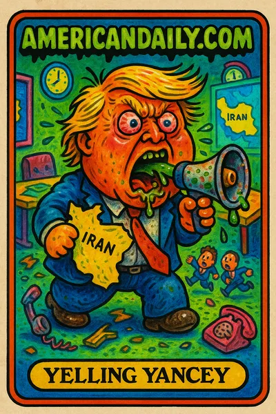 Your daily dose of bold, satirical news art and parody headlines. AmericanDaily.com transforms today's top stories into grotesque, hilarious, and unforgettable trading-card-style illustrations. The news is already a circus - we just drew the clowns.