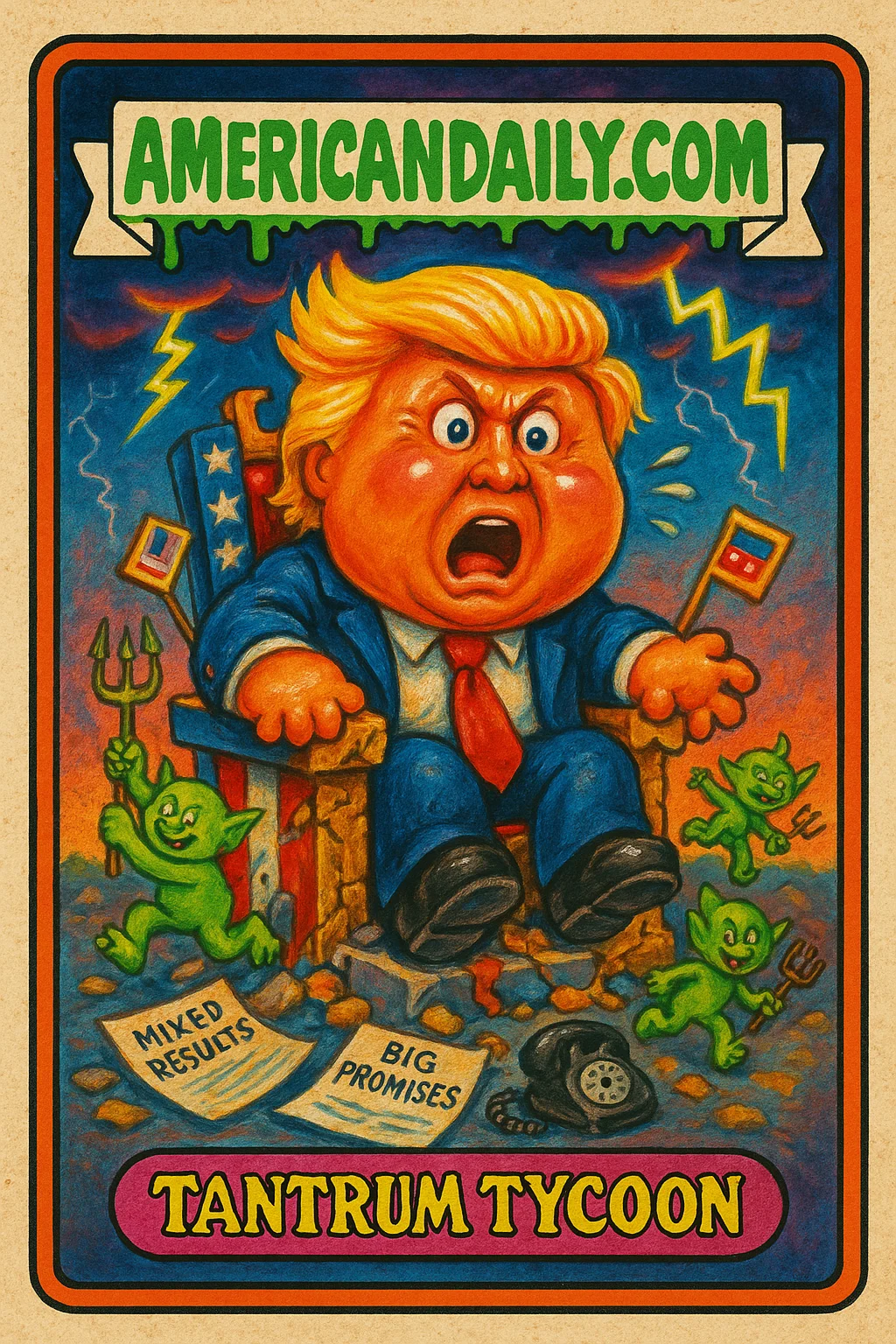 A once loyal online community now targets Trump, illustrating the fracturing of previously strong alliances. Absurdity abounds as imagery of a toppled throne punctuates their revolt.