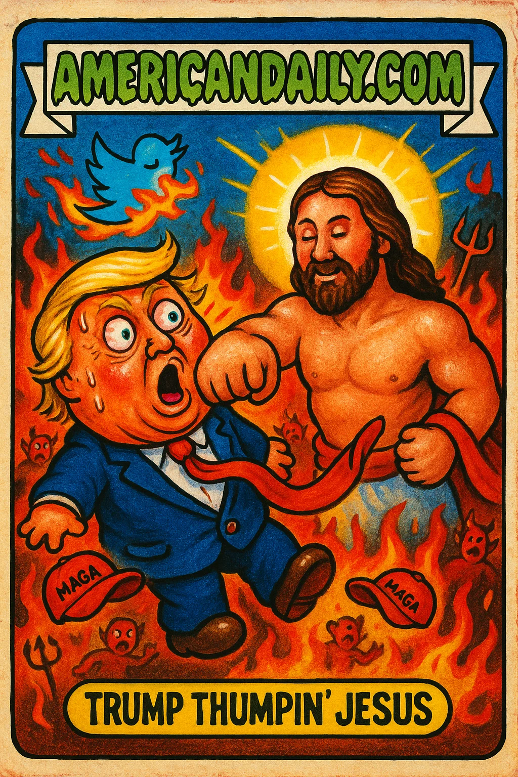 In a surprising turn, an AI-created Iranian video depicts a muscular Jesus delivering a divine punch to Donald Trump, casting him into a fiery inferno.