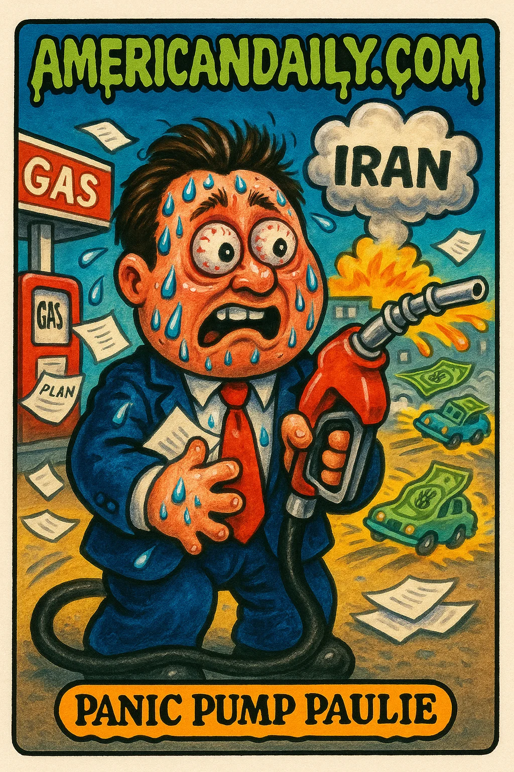 A satirical take on the Trump team's panic over rising gas prices as tensions with Iran escalate.