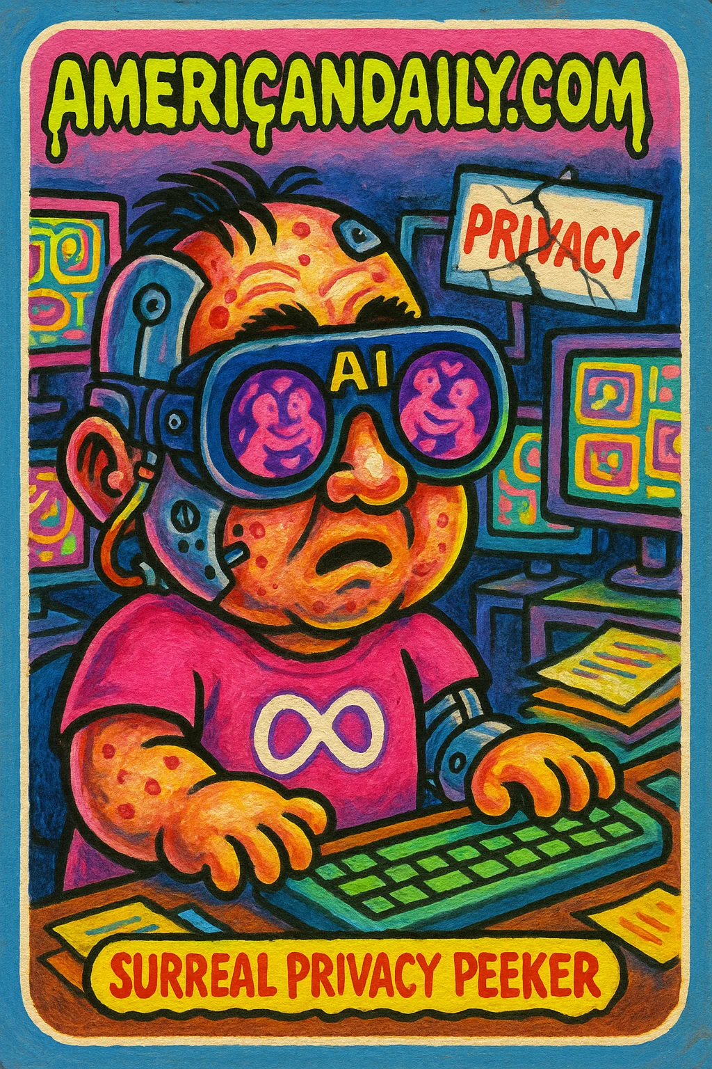 In a bizarre twist of modern tech, Meta faces scrutiny as regulators probe reports of employees watching private AI glasses footage. This satirical trading card captures the surreal chaos of the incident.